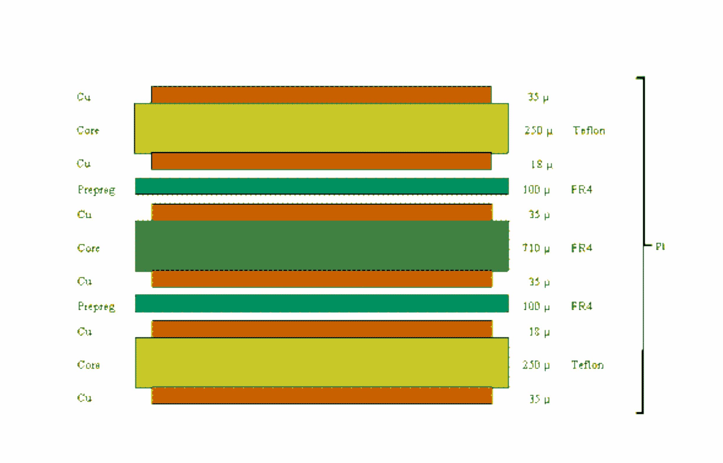 Sometimes you need to have a special dielectric constant of PCB material, but it should be not expensive. For multilayer PCB’s we can offer you in this case following solution :